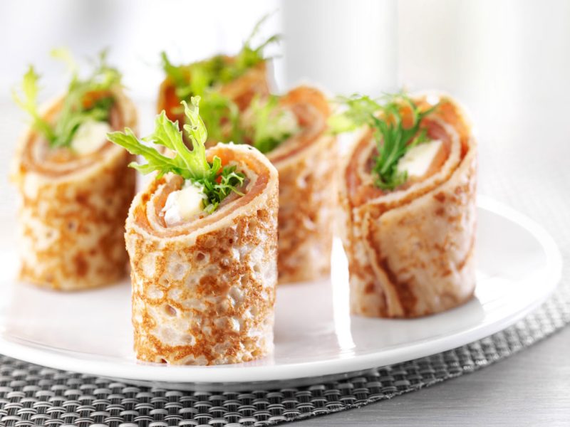 Smoked salmon and dill sauce pancakes